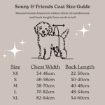 Use the size guide to determine the best fit for your pooch. While the sizing scale is created to fit most breeds, not all breeds may be proportioned for the standard sizes. If you would like to enquire about a custom measurement coat, email: [email protected]